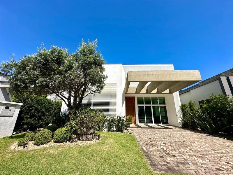 Casa térrea no Condomínio Capão Ilhas Resort, em Capão da Canoa. São 250m² privativos. 04 suítes. Lavabo. Sala de estar com lareira. Jantar. Cozinha americana com churrasqueira. Lavanderia. Posição solar frente oeste. Vai ser entregue com os móveis fixos. Abrigo para 02 carros.